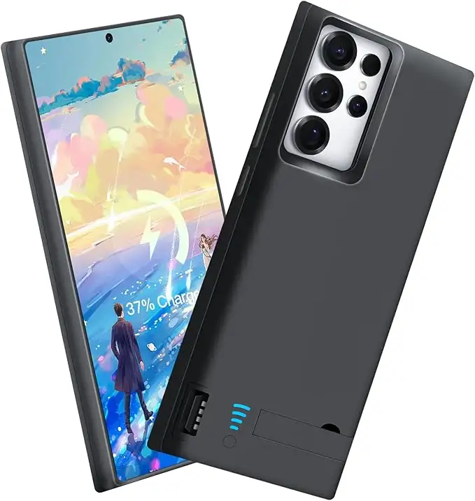 5000mAh Extended Power The built-in 5000mAh battery adds up to 100% extra charge, perfect for long trips, exclusively designed for Galaxy S25 Ultra.